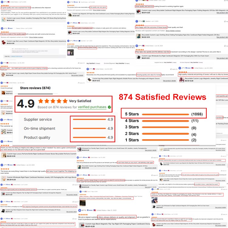 ກ່ອງຫຸ້ມຫໍ່ທີ່ກໍາຫນົດເອງຂອງພວກເຮົາຖືກນໍາໃຊ້ຢ່າງກວ້າງຂວາງສໍາລັບການຫຸ້ມຫໍ່ຂອງຂວັນ, ການຫຸ້ມຫໍ່ເຄື່ອງນຸ່ງ, ການຫຸ້ມຫໍ່ເກີບ, ແລະການຂົນສົ່ງຜະລິດຕະພັນ, ປະສົມປະສານທັງສອງຫນ້າທີ່ແລະການອຸທອນທາງສາຍຕາ. Zeal X ສຸມໃສ່ການຜະລິດທີ່ມີຄ່າໃຊ້ຈ່າຍ, ການຄວບຄຸມຄຸນນະພາບທີ່ຫມັ້ນຄົງ, ແລະເວລານໍາໄວ, ຊ່ວຍໃຫ້ລູກຄ້າສ້າງມູນຄ່າຍີ່ຫໍ້ທີ່ເຂັ້ມແຂງໂດຍຜ່ານການແກ້ໄຂການຫຸ້ມຫໍ່ກ່ອງບັນຈຸທີ່ເຊື່ອຖືໄດ້. ບໍ່ວ່າທ່ານຕ້ອງການກ່ອງຫຸ້ມຫໍ່ທີ່ຫລູຫລາຫຼືກ່ອງຫຸ້ມຫໍ່ຂາຍຍົກທີ່ປະຕິບັດໄດ້, ພວກເຮົາສົ່ງຄຸນນະພາບທີ່ສອດຄ່ອງເພື່ອສະຫນັບສະຫນູນການເຕີບໂຕຂອງທຸລະກິດຂອງທ່ານ.